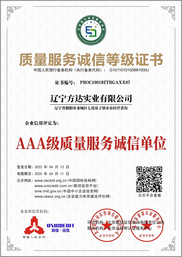 質(zhì)量服務誠信等級證書